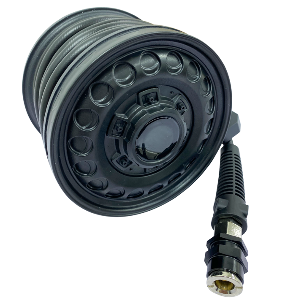 - بكرة مع هوز هوا بطول 7 متر مطاطي مرن و متين يتحمل ضغط عالي.